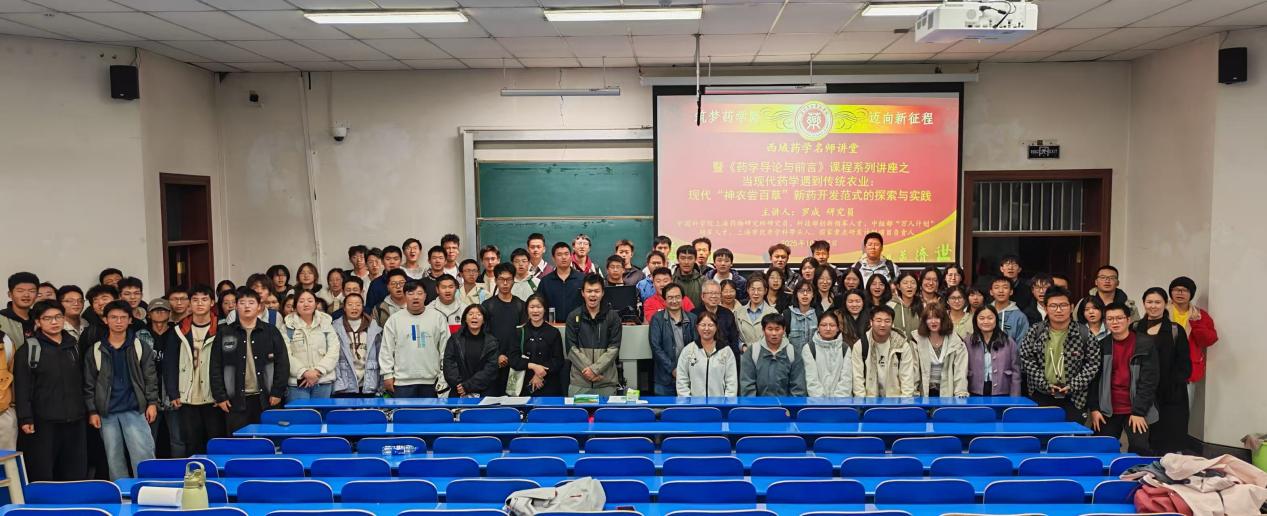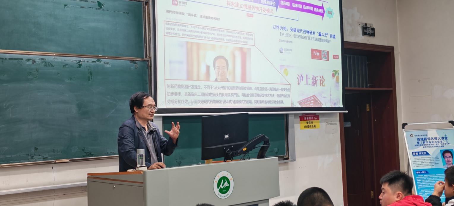 2025年10月13日晚,西域药学名师大讲堂暨《药学导论与前言》课程特邀中国科学院上海药物研究所罗成研究员,在石河子大学南区杏4楼511教室为本科及博士新生授课。本次课程以当现代药学遇到传统农业:现代“神农尝百草”新药开发范式的探索与实践为题。