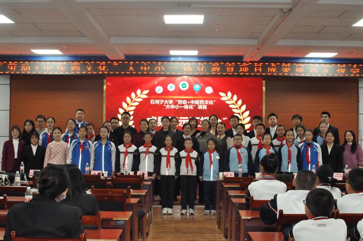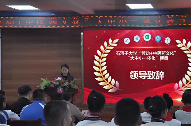 传承中医药文化基因,深耕劳动教育实践。2025年11月30日下午,石河子大学“劳动+中医药文化”“大中小一体化”项目成果展示汇报会在石河子市第十一小学多功能厅成功举办。本次活动由第八师石河子市教育局主办,石河子大学承办,石河子第十一小学、石河子第八中学、石河子第三小学协办,旨在全面展示“劳动教育与中医药文化融合”的育人成果,推动大中小学教育协同发展。第八师石河子市教育局副处级督学王凤、石河子大学教务处副处长李玲、石河子大学药学院副院长刘雯霞、石河子第八中学副校长邓磊、第十一小学副校长宋晓燕、第三小学副校长荆霞、石河子大学中药与天然药物学系党支部书记李红以及各教师代表共同出席活动。