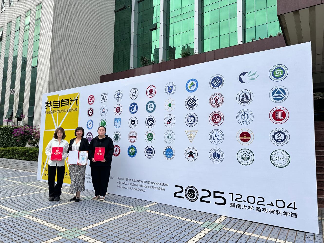 近日,第三届全国大学生化妆品创新大赛决赛在暨南大学举行。我校药学院李红副教授、陈文教授指导的学生团队,凭借项目“薰馨修护——轻盈水润焕亮无瑕肌肤”,从全国500余项参赛作品中脱颖而出,荣获全国一等奖(配方组)。本次大赛竞争激烈,仅93项作品入围决赛,该奖项是我校在此项全国赛事中取得的重要成绩。